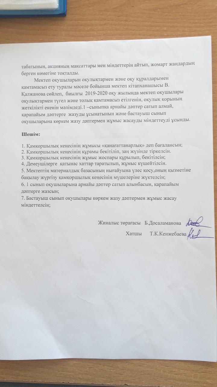 Қамқоршылық кеңестің кезекті отырысы » "Ахмет Байтұрсынұлы атындағы орта мектебі" КММ