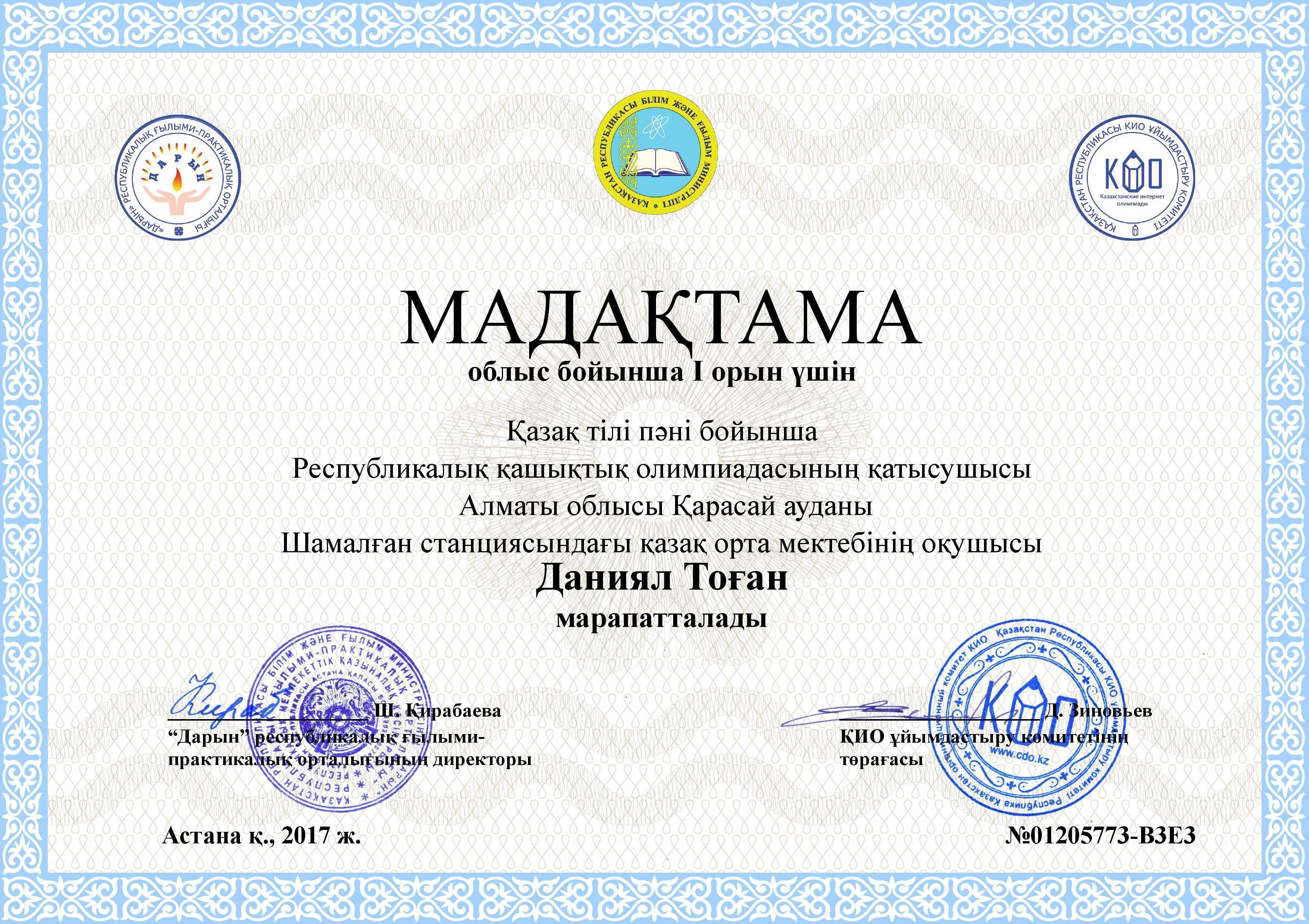 №______________________, Қазақстан Республикасының __________________________________________________ «_______» ________________ _________ж.;